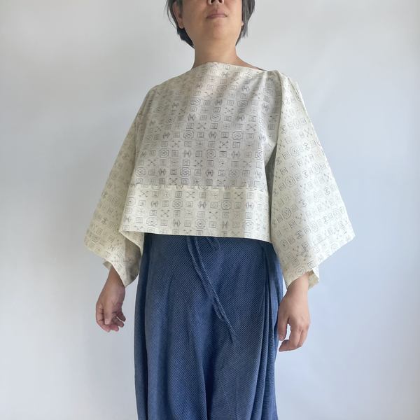 【1点もの】丁字のプルオーバー2way -ウール着物地 オフホワイトに絣模様 & コットンローン 生成り