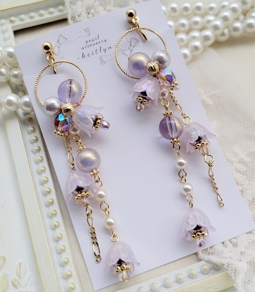【ラベンダー】すずらんモチーフのロングイヤリング/ピアス
