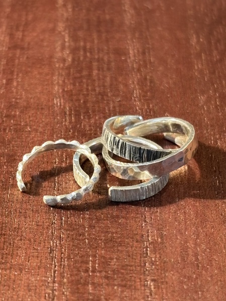 純度の高いシルバー950を使用したアクセサリーや、三色の金属を練り合わせた作品を中心に、指輪、イヤリング&ピアス、イヤカフ、ネックレス等、鍛造で地金から作る彫金作品を数多く販売いたします。