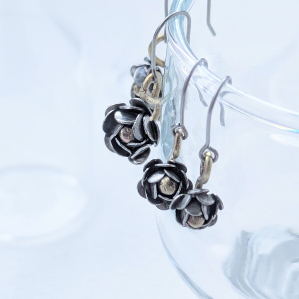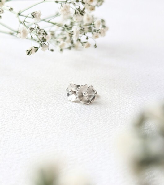 金属の板から作った花をあしらった、アクセサリーや髪飾りを展示・販売予定です。