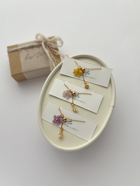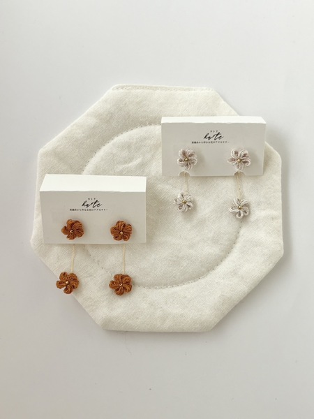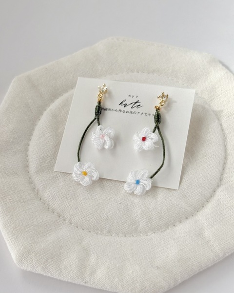 過去の出店情報 Creators & Items ka+te(カトテ) お品書き プロフィール Menu 枝花 枝花 furico furico furico チェーンリング foopy Profile 【甘すぎず大人っぽい配色のご提案】が得意です。刺繍糸を編んで作ったお花をアクセサリーに仕立てます。 250色以上の刺繍糸に加え、ゴールドやシルバーの糸も使用した"ka+teだけの世界観"をお楽しみください。 出店タイトル ka+te(カトテ) 出店日 両日 クリエイター名 ka+te(カトテ) 出店ジャンル SNS ka+te(カトテ) 刺繍糸アクセサリー このお店をリストに追加