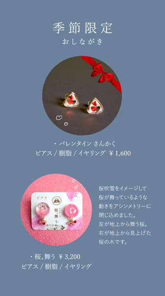 出店情報 Creators & Items シー・エトワール お品書き プロフィール Menu チェック お品書き チェック お品書き チェック お品書き チェック お品書き チェック お品書き チェック お品書き チェック お品書き チェック お品書き Profile 樹脂でつくったさんかくや 琉球ガラスの装身具 詳しいお品書きは インスタグラムにてお知らせ 出店タイトル シー・エトワール 出店日 両日 クリエイター名 シー・エトワール 出店ジャンル アクセサリー インテリア・雑貨 ステーショナリー その他 SNS シー・エトワール デザイナー このお店をリストに追加