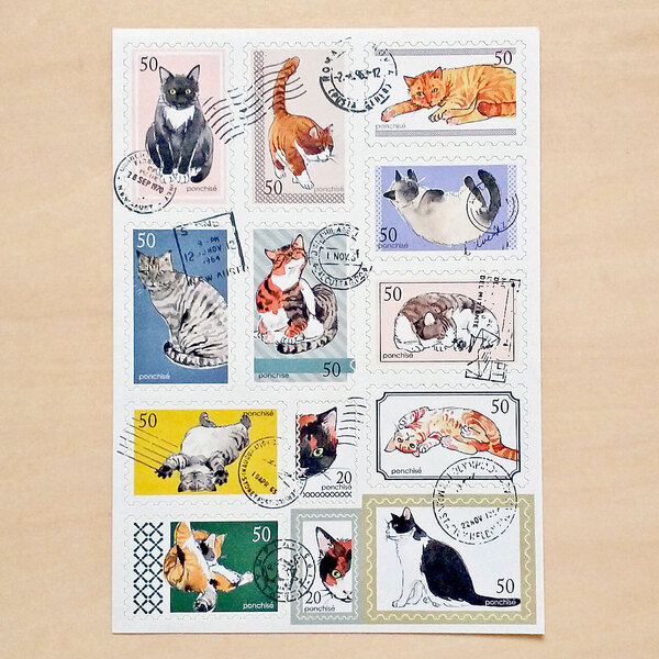 猫の切手風シール