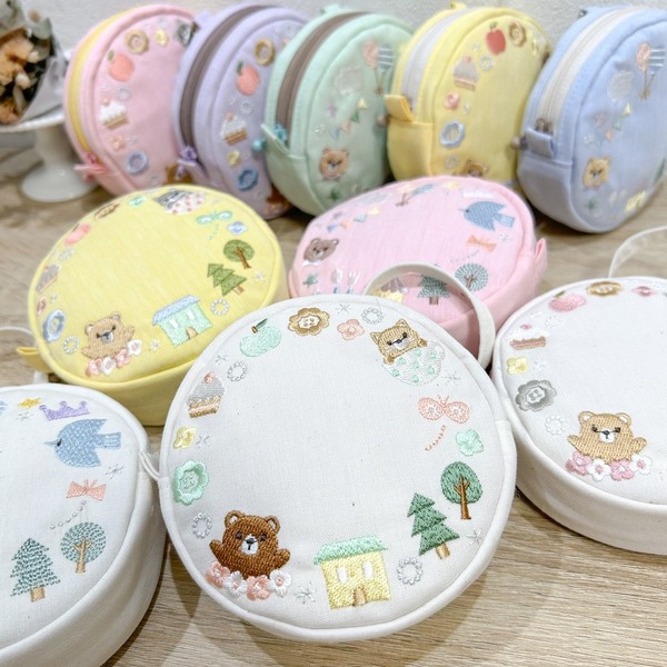 まあるいフォルムのポーチや、刺繍が主役の巾着など、日常がほっこりするようなアイテムをひとつひとつ丁寧に仕立てています。