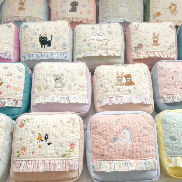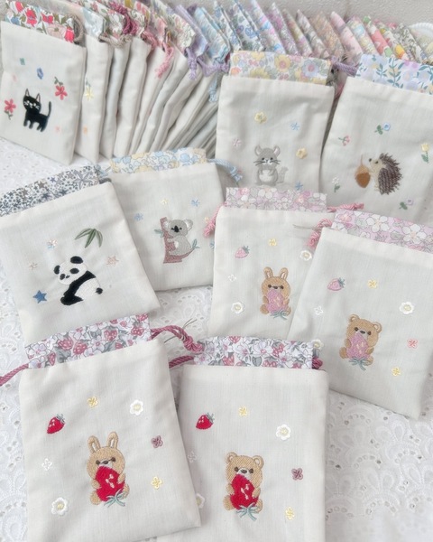 すべて工業用刺繍機で丁寧に仕上げており、糸色や生地合わせにもこだわった一点物。ぜひお気に入りを見つけてくださいね。