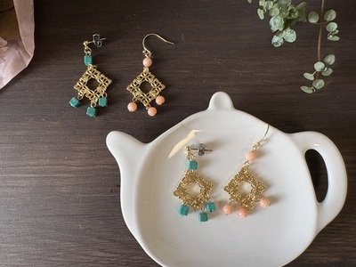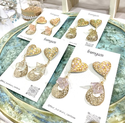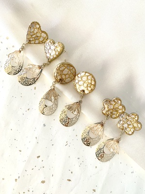 フリルフラワーとボロノイ模様の耳飾り(ゴールドカラー)